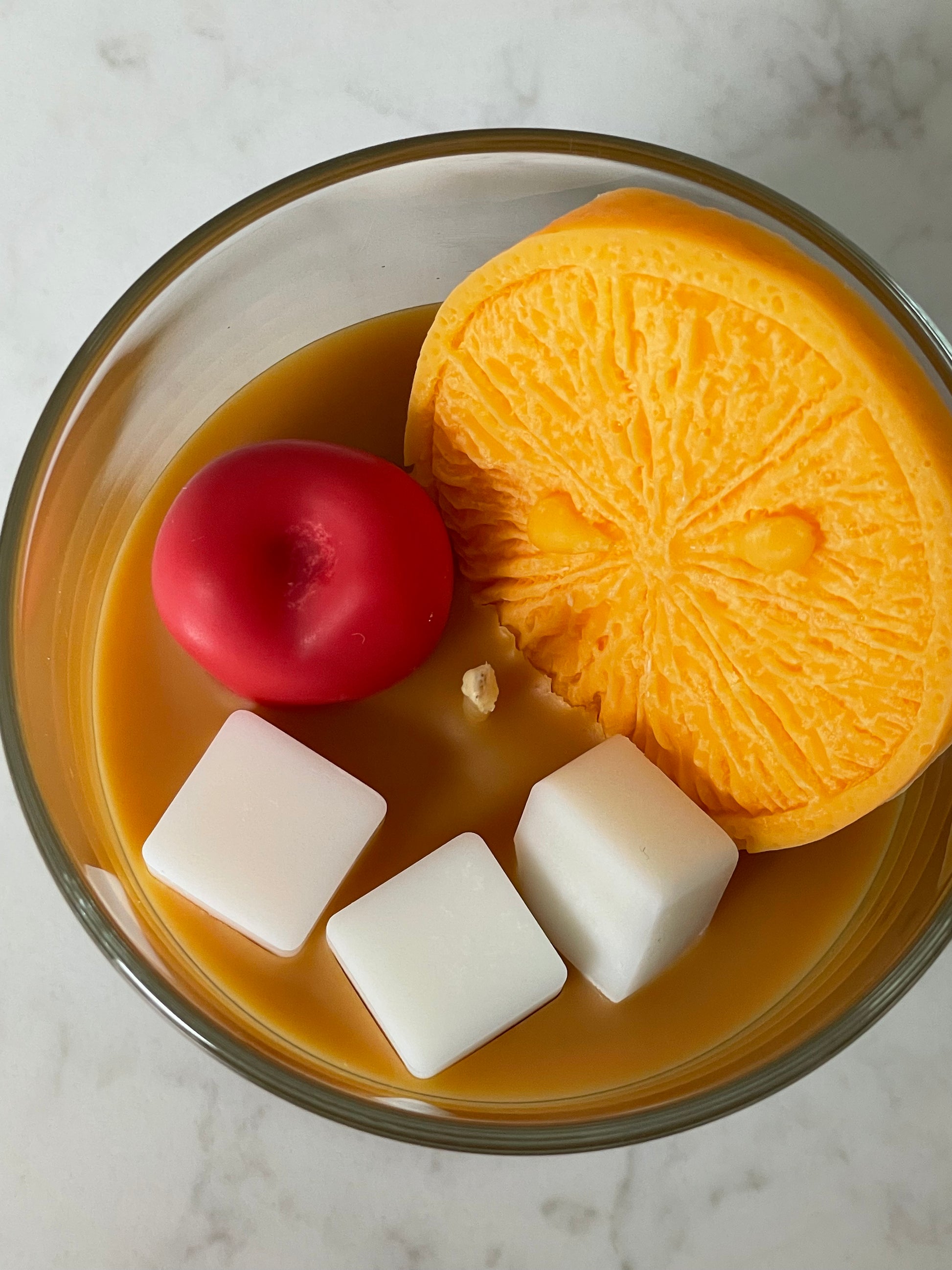 Step back in time with our Old Fashioned Candle, a captivating tribute to the iconic cocktail. Presented in a glass that perfectly mimics a whiskey tumbler, complete with a lifelike wax ice cube, cherry, and orange slice, it beautifully brings the drink to life. The warm, smoky fragrance captures the essence of the beloved classic, filling your space with a cozy aroma that transports you to a dimly lit lounge—inviting moments of pure relaxation and timeless sophistication.